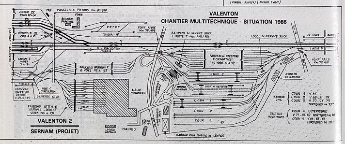 Valenton. Plan général du chantier multitechnique en 1986. Tiré de : La Vie du rail, n° 2050, 26 juin 1986, p. 6.