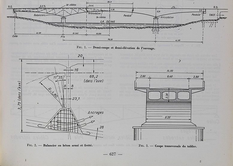 Villeneuve-Saint-Georges . Pont de Villeneuve-Saint-Georges (n°3). Demi-coupe, demi-élévation et coupe transversale du tablier. Tiré de : Annales de l'Institut technique du bâtiment et des travaux publics, 6e année, n°67-68, juillet-août 1953.