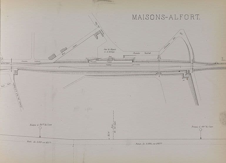 Chemin de fer de Paris à Lyon. Profil général de la ligne ; plans et profils détaillés des gares, s.d. [vers 1852-55], [d'après Lagrière, ancien chef de gare de Bercy]. Plan de la gare de Maisons-Alfort. (Ecole nationale des ponts et chaussées)