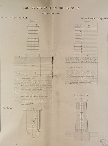 Choisy-le-Roi. Pont ferroviaire de la Grande Ceinture. Détail des piles. Elévations et plans. (Ecole nationale des ponts et chaussées)