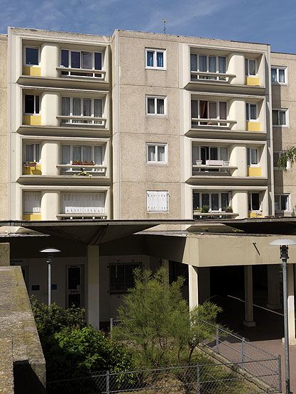 Vitry-sur-Seine, cité dite groupe Roger Derry, 4 rue du 18 Juin 1940. Vue du bâtiment.