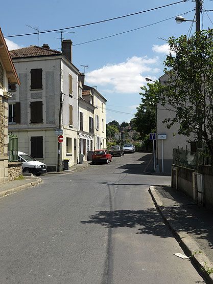 Pont suspendu de Villeneuve-Saint-Georges (n°1). Vue de l'extrémité de l'avenue Le Foll qui débouchait sur l'ancien pont de Villeneuve.