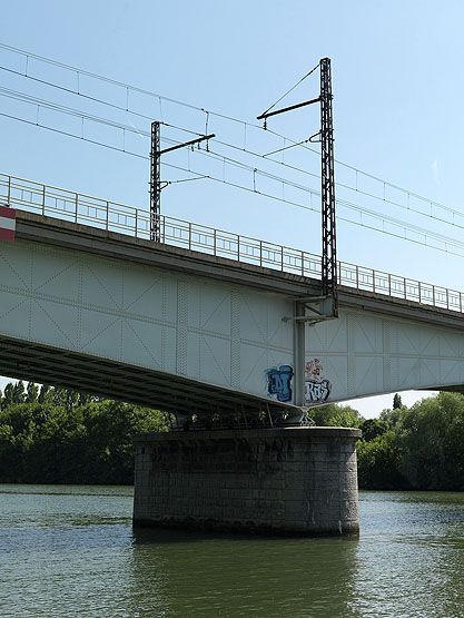 Choisy-le-Roi. Pont ferroviaire de la grande ceinture. Articulation entre la pile et le tablier.