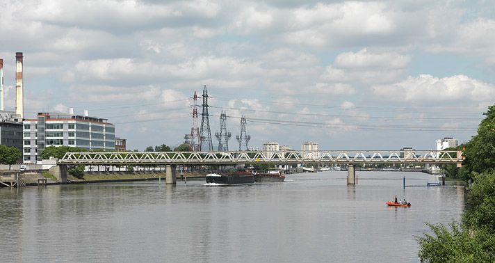 Alfortville, Vitry-sur-Seine. La Seine, au premier plan la passerelle technique du gaz.