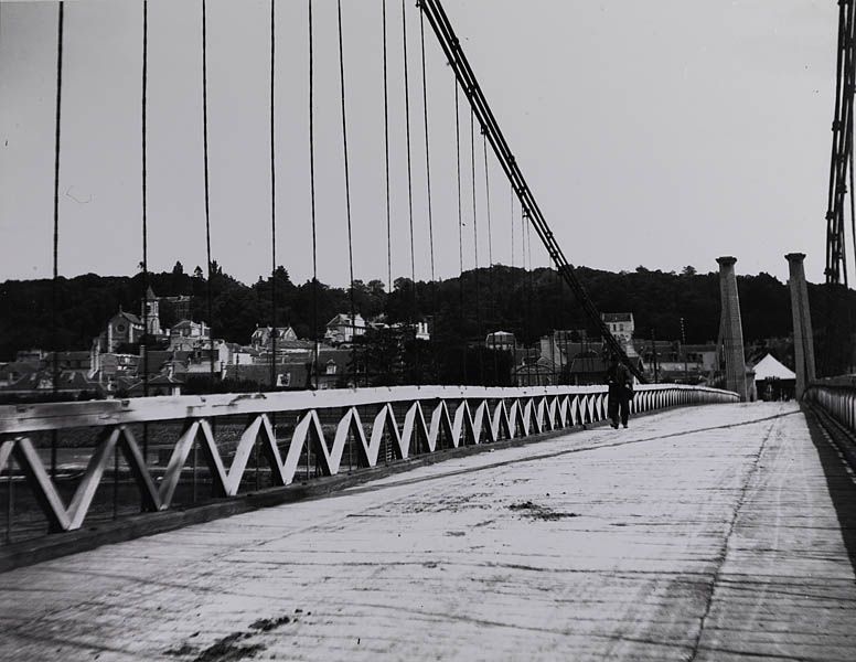 Pont suspendu de Villeneuve-Saint-Georges (n°1). Vue sur le pont suspendu. (Musée municipal, Brunoy)
