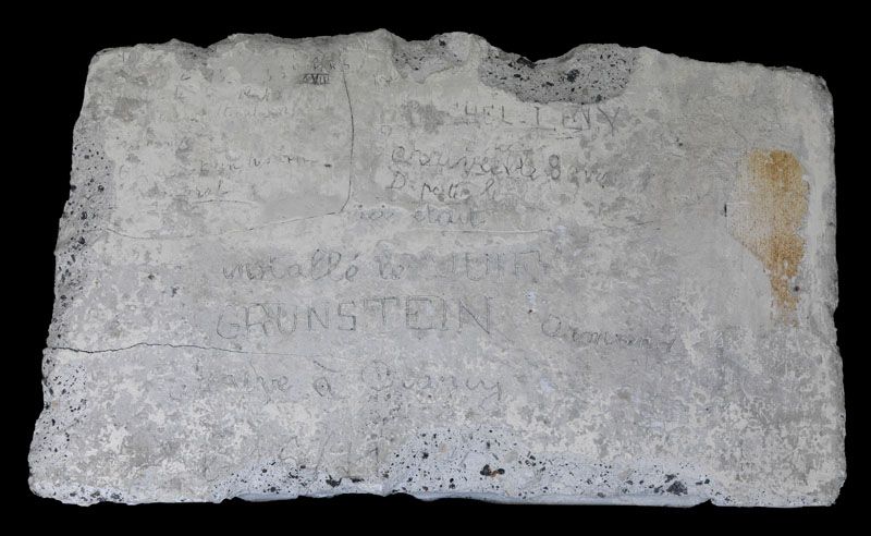 « Ici était _ installé le « JUIF » GRUNSTEIN Armand _ arrivé à Drancy le 16.11[1943] », « RACHEL LEVY _ arrivée ici le 8 avril [19]44 _ déportée le [...] ».