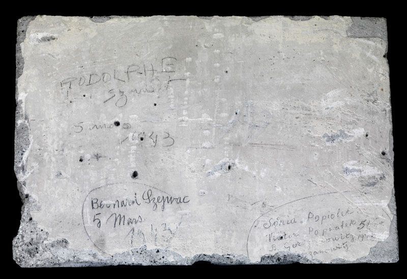 « RODOLPHE_ Szmidt- 5 mars_ 1943 », « Bernard Szejwac _ 5 Mars _ 1943 », « Sonia Popiolek _ Victor Popiolek 5 _ B. Gerszanowitz 194[3], [Ger]szanowitz [...] » (restauration achevée).