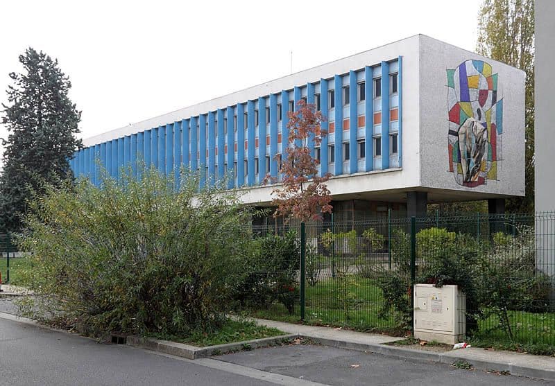 Alfortville, usine à gaz, quai d'Alfortville. Bâtiment administratif orné de la mosaïque de Fernand Léger. Photographie, 2011.
