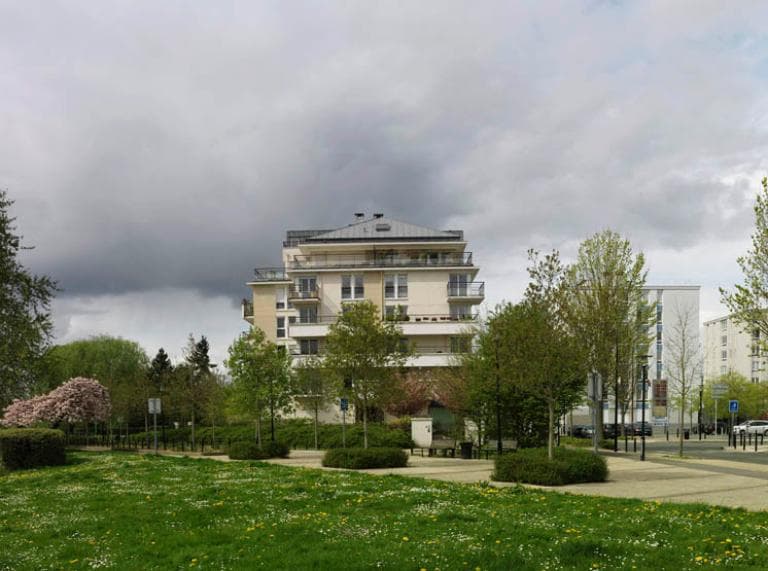 Vue générale d'un nouvel immeuble construit en 1996 dans le cadre de l'opération de la ZAC de Guyancourt II, destinée à désenclaver et redynamiser le quartier du Pont-du-Routoir.