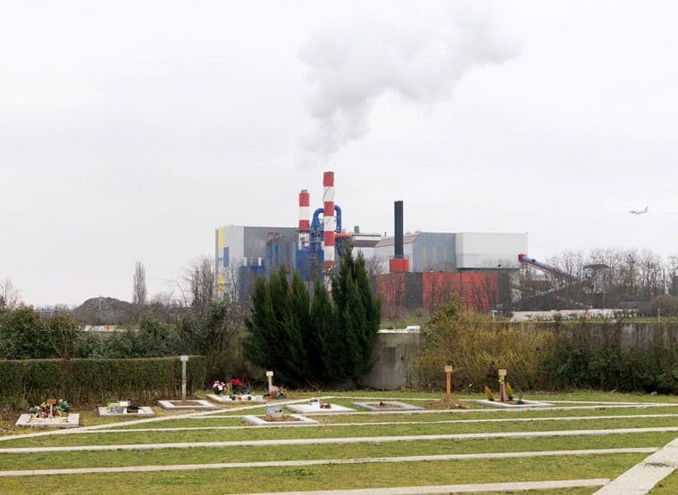 Massy, avenue du Maréchal-Koenig. Vue de l'usine d'incinération depuis le cimetière sud.