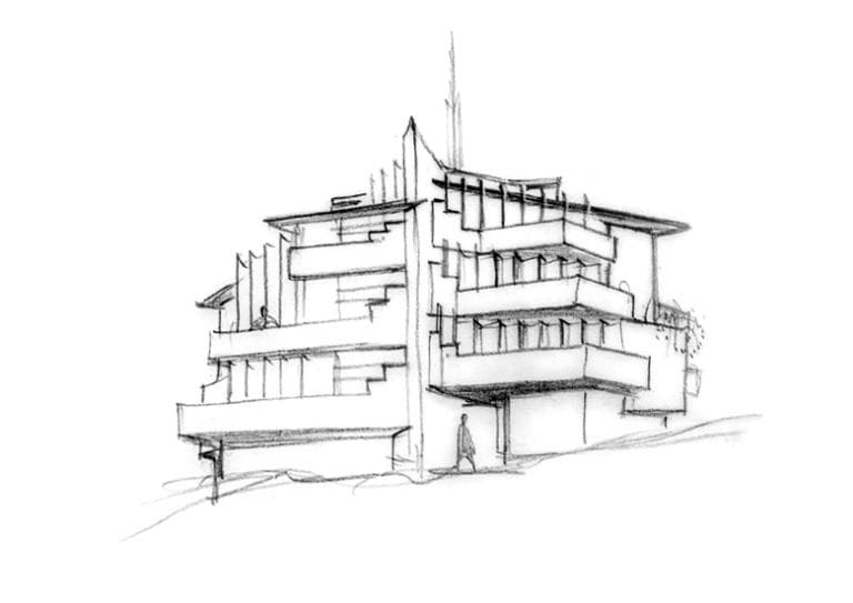 Dessin préparatoire, façade postérieure.