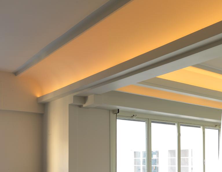Détail des sources de lumière savamment dissimulées dans le plafond de l'atelier