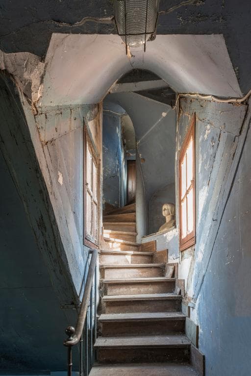 Vue de l'escalier menant aux combles au-dessus de l'atelier