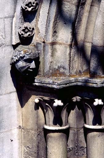 Vue extérieure de la tour nord : détail de sculpture.