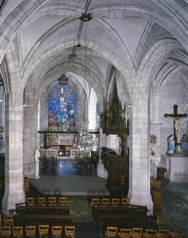 Vue de la nef et du choeur, depuis la tribune d'orgue.