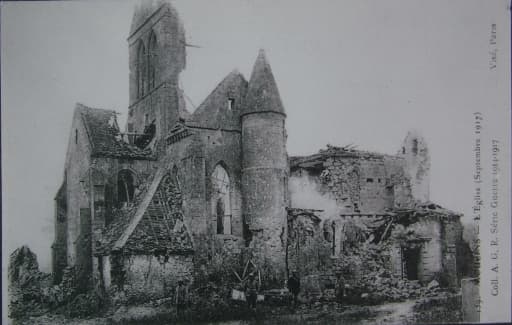 Ancienne église en ruines pendant les conflits. A. G. R. Série Guerre 1914-1917.