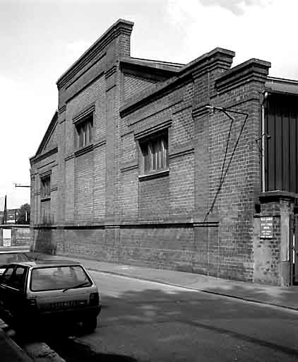 Atelier de fabrication, pignon sud sur rue, vue générale.