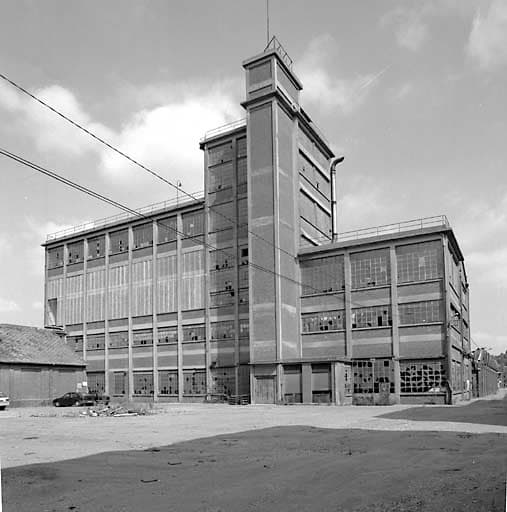 Atelier de fabrication du linoléum, élévation extérieure Sud, vue d'ensemble.