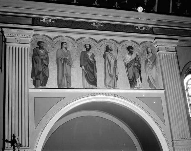Choeur, peinture murale nord : vue d'ensemble des six apôtres.