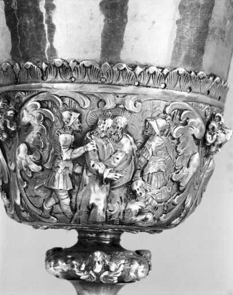 Détail de la fausse coupe : décor représentant Jésus au mont des Oliviers ; le baiser de Judas et l'arrestation du Christ.