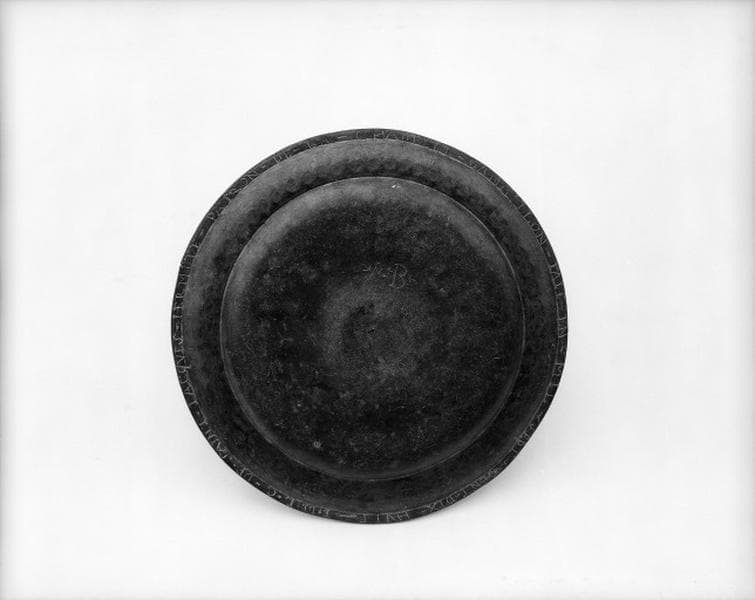 Revers portant inscriptions et date 'AB' et 'E DE LC DE SAINT JACQUES LERMITE PATRON DE LA CHAPELLE DANGILLON FAIT EN MIL SEPT CENT DIX HUIT'.