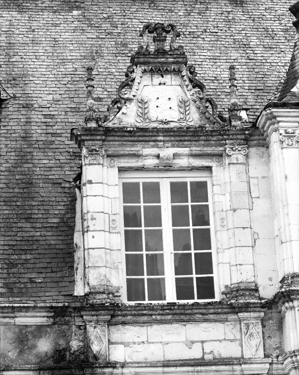 Cour d'honneur, bâtiment principal, troisième lucarne.