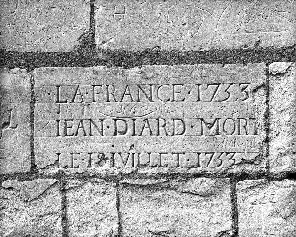 ""Pavillon nord-Est, mur sud, inscription ""LA FRANCE 1753 JEAN DIARD MORT LE 18 JVILLET 1753"".""