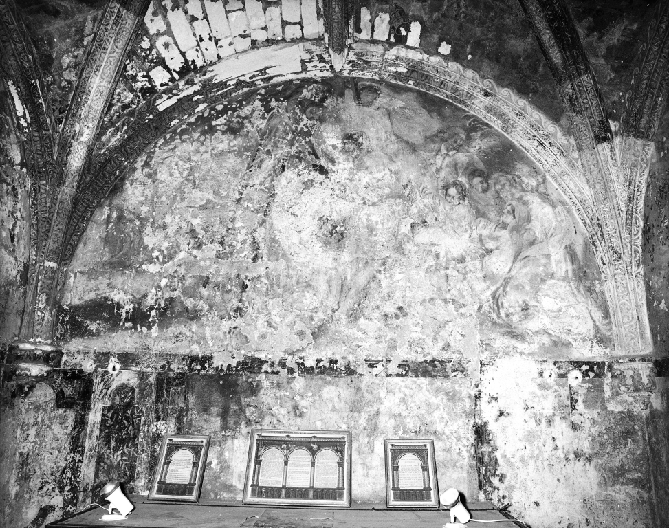 ""Mur Est, peinture murale représentant ""la Descente de croix"".""