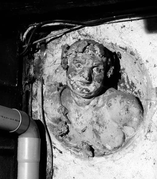 Cour mur sud. Détail : médaillon représentant le dieu Bacchus.