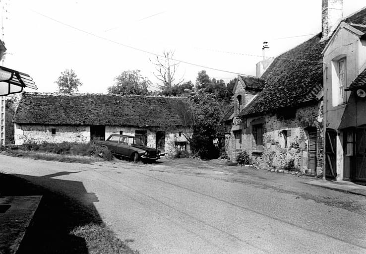 Les Comnailles : vue d'ensemble de logis accolés et de leurs parties agricoles, de l'est.
