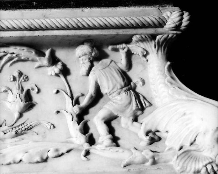 Tombeau des enfants de Charles VIII : détail de la partie supérieure de la face nord, Samson brandissant la mâchoire d'âne.