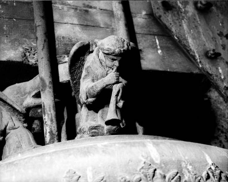 Cloche dite Maurice : détail d'un ange sonneur de trompe du sommet.