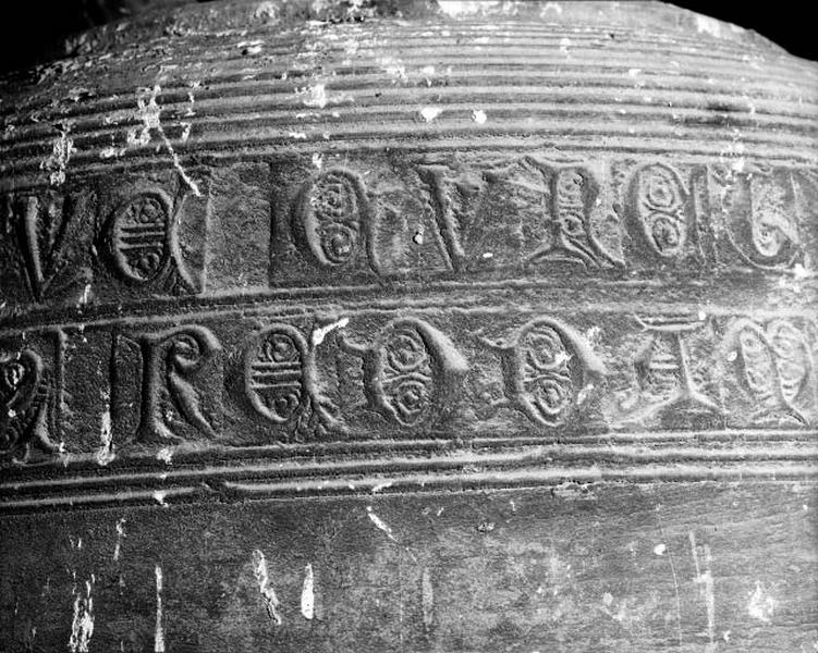 Cloche du XIV siècle, détail de l'inscription.