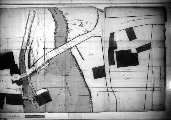 Plan de la route de Sainte-Maure à L'Ile-Bouchard, contenant l'entrée de la ville de l'Ile-Bouchard du côté de Sainte-Maure, XVIIIe siècle. Détail.