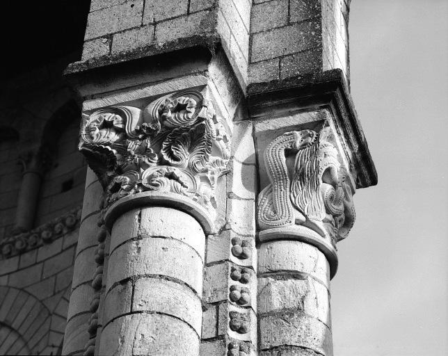 Colonnes engagées sud-ouest du pilier sud : feuillages et monstres.