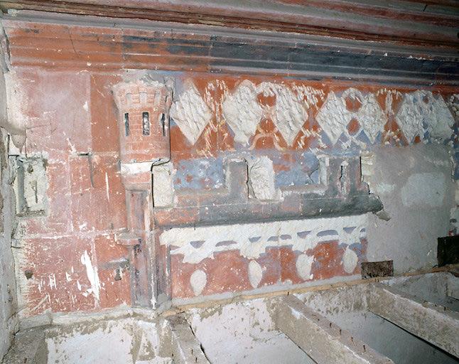 Grande salle du 1er étage : partie haute de la cheminée (détail).