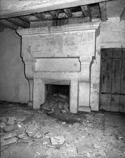 Les communs, 1er étage : cheminée, 1ère salle à droite de l'escalier.
