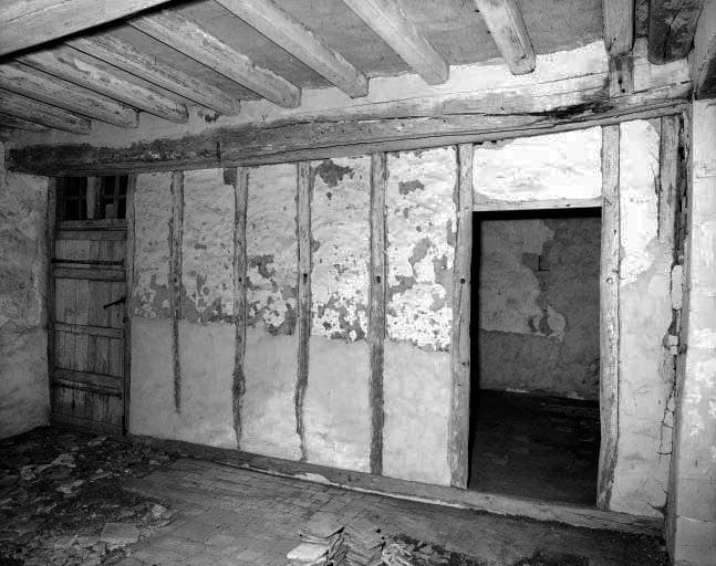 Les communs, 2ème salle du 1er étage : cloison en pan de bois séparant la garde-robe de la chambre.