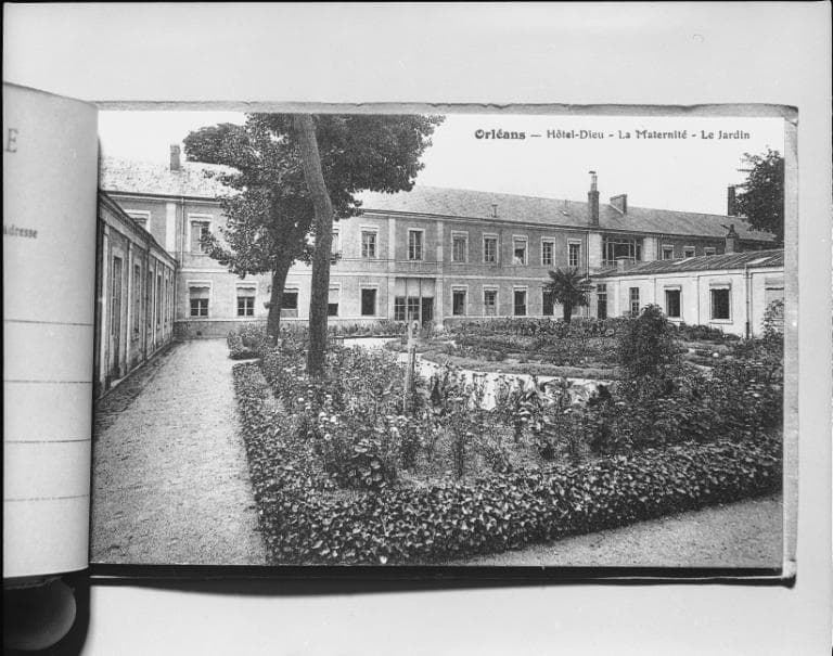 La maternité établie dans le pavillon Halmagrand (ancien hospice Caroline), après 1923 (carte postale ancienne). ; Ancien hospice Caroline transformé en maternité (pavillon Halmagrand) à partir de 1921.