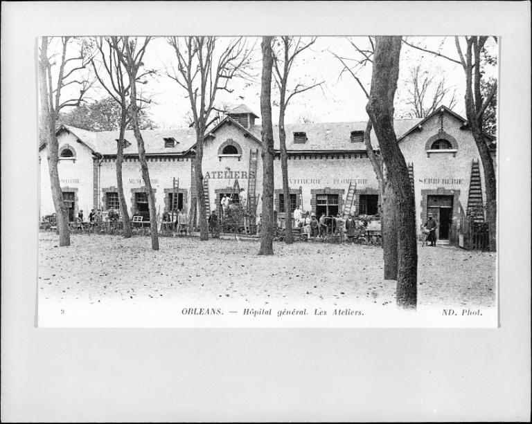 Les ateliers construits près du boulevard, à l'ouest, et détruits au début des années 1950 (carte postale éditée par Neurdein Frères).