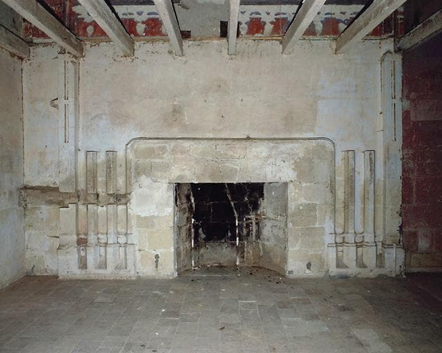 Grande salle : cheminée.