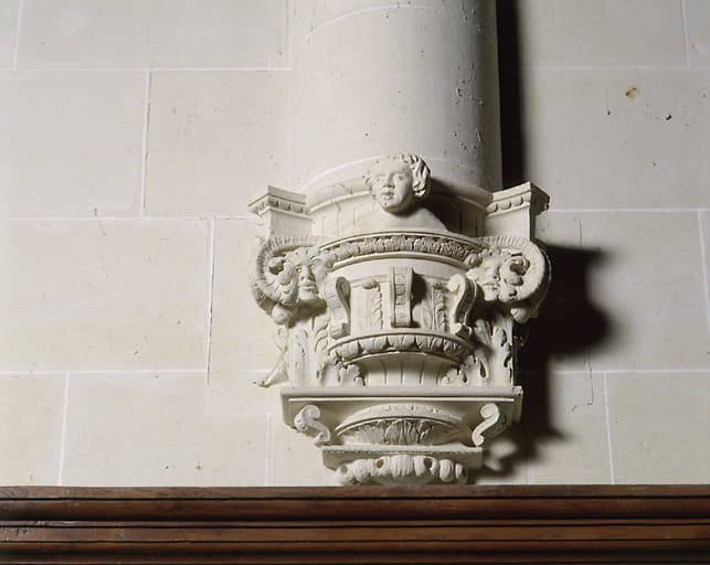 Culot supportant une demie colonne engagée au-dessus des stalles à gauche.