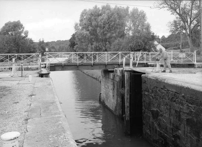 Nouvelle écluse du Moulin Brûlé n° 21, pont oscillant (fonctionne avec un levier).