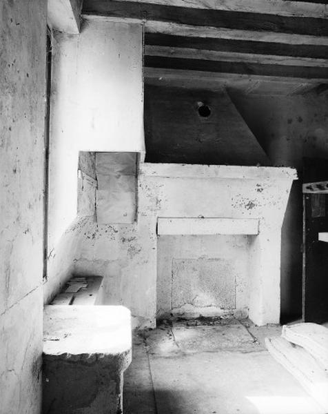 Ancienne maison du contrôleur et de l'éclusier, rez-de-chaussée, évier en pierre et cheminée.
