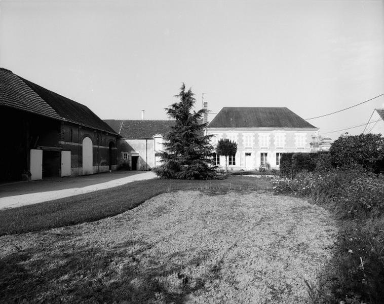 Lailly-en-Val : Vue partielle de la ferme sise 8 rue de la Haut avec le logis à droite et bâtiment à usage de grange et de remise à gauche.