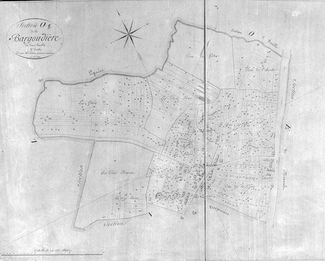 Plan cadastral, 1828 : la Bargoudière, vue d'ensemble.