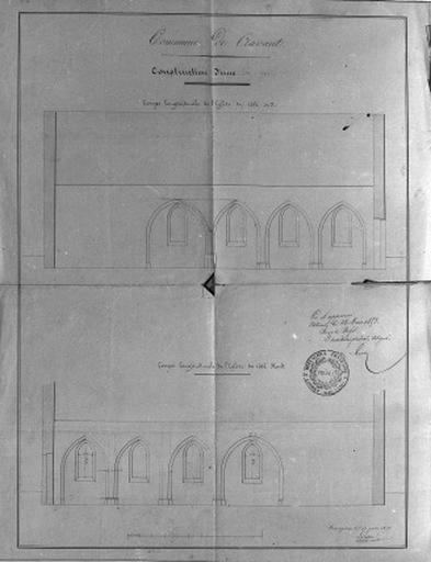 Elévations des grandes arcades nord et sud (état actuel et projet).