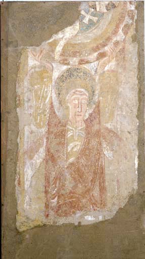 Peintures murales déposées actuellement au Musée Girodet et provenant de l'église de Cortrat : anges portant l'Agneau Mystique (à l'origine cette peinture ornait l'intrados de l'arc d'entrée de l'abside).