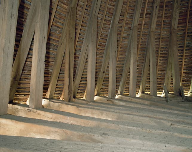 Tour du milieu, hourds : 2ème enrayure, assemblage coyers, chevrons et jambettes.