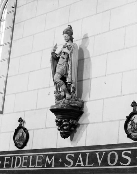 Vue d'ensemble de la statue (fin19e-début 20e), saint Georges est représenté le pied sur le dragon.